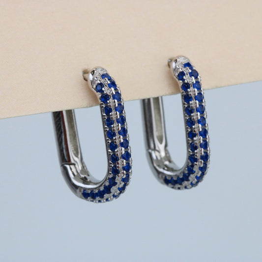 Blue or White Crystal Oval Hoop Earrings