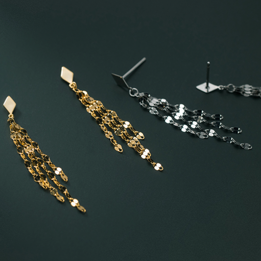 Diamond Chain Drop Stud Earrings