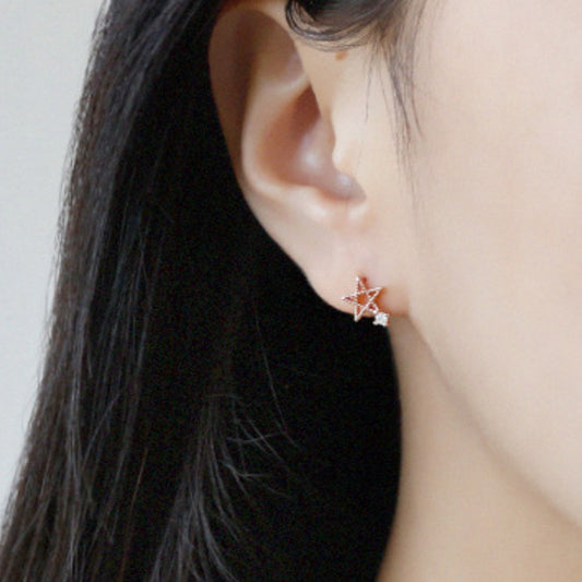 Crystal Star and Moon Asymmetrical Stud Earrings