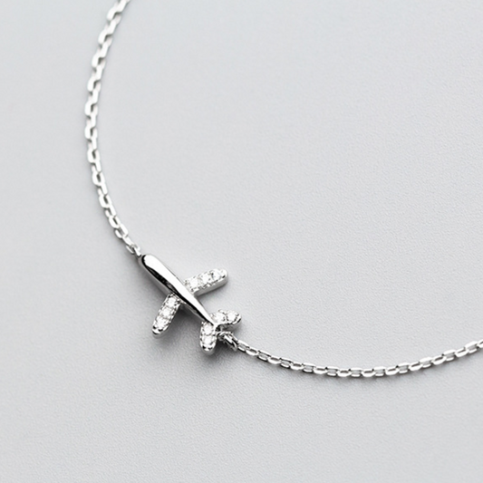 Crystal Detail Plane Charm Bracelet