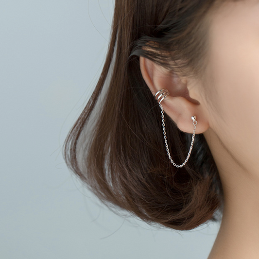 Chain Linked Ear Cuff and Ball Stud Earring