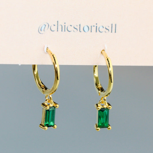 Green Crystal Drop Hoop Earrings