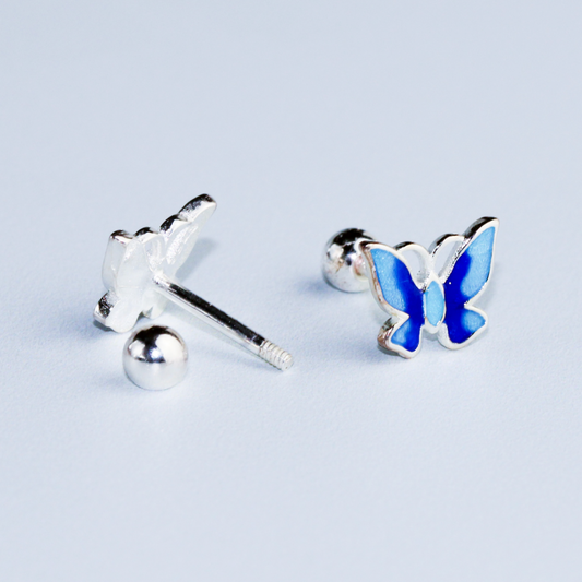 Blue Butterfly Screw Back Stud Earrings
