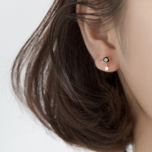 Black Crystal Saturn Stud Earrings