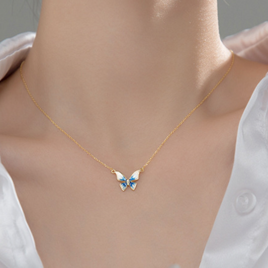 Lilac and Blue Butterfly Necklace
