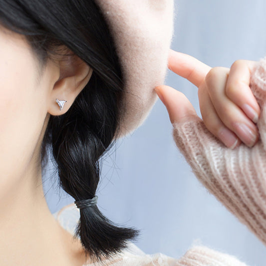 Blue, Yellow or White Crystal Triangle Stud Earrings