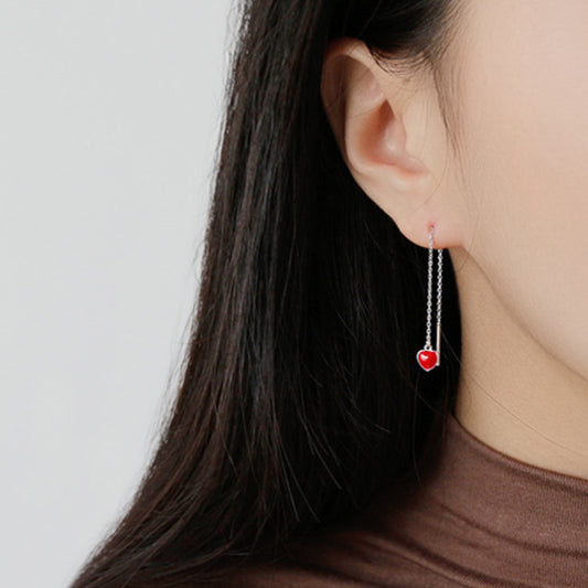 Red Heart Threader Earrings