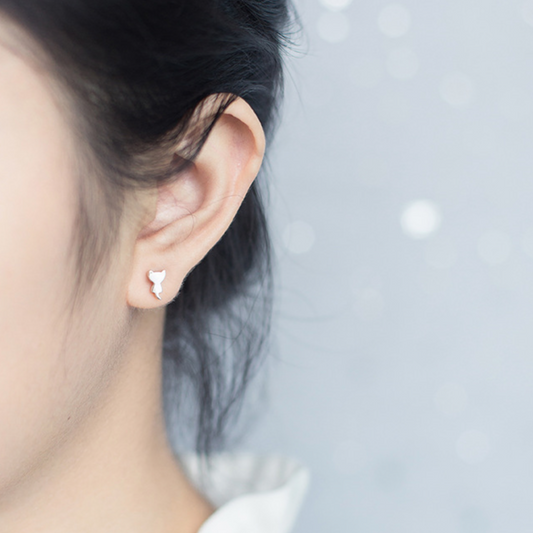 Cat and Fish Bone Stud Earrings