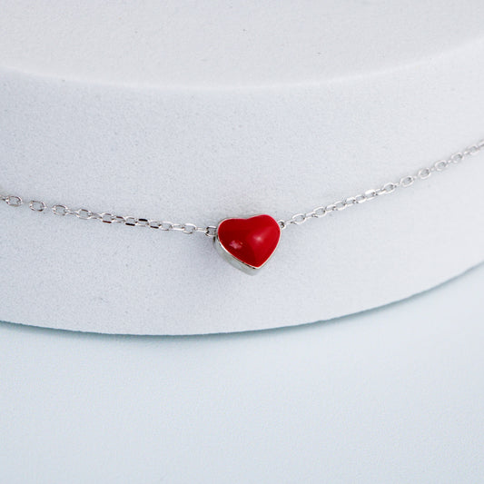 Tiny Red Heart Charm Anklet