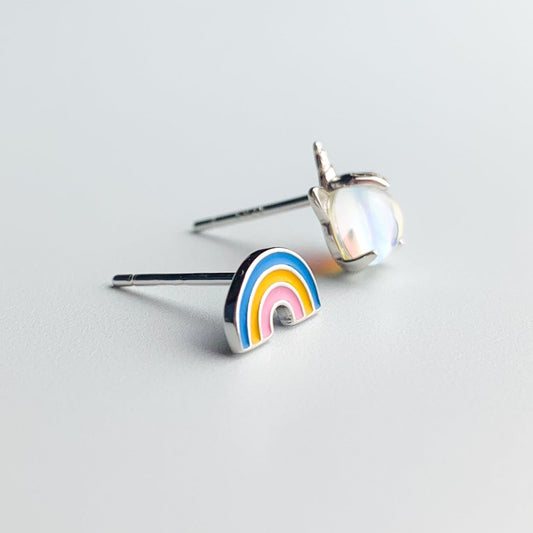 Asymmetrical Unicorn and Rainbow Stud Earrings