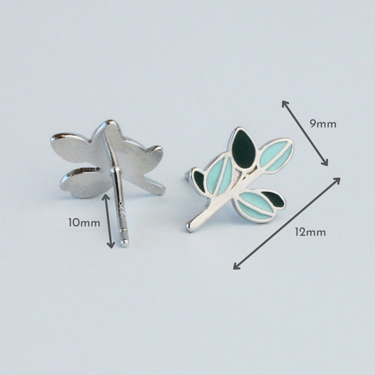 Blue Leaf Stud Earrings