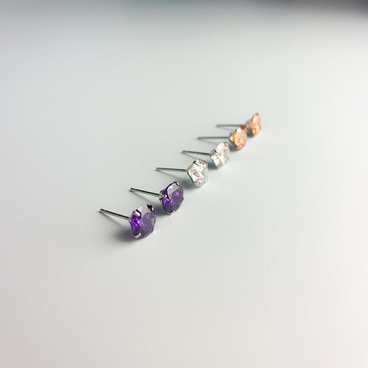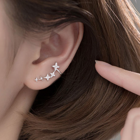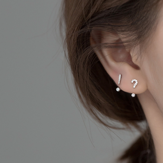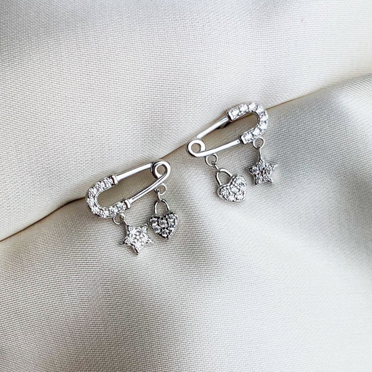 Crystal Safety Pin Stud Earrings with Dangle Charms