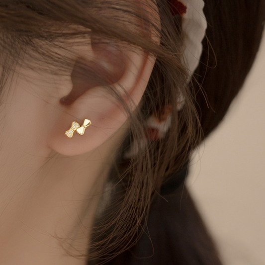 Tiny Crystal Bow Stud Earrings
