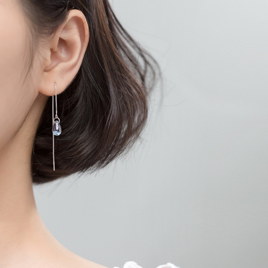 Blue Flecked Crystal Threader Earrings