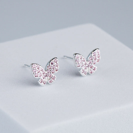 Pink Crystal Butterfly Stud Earrings