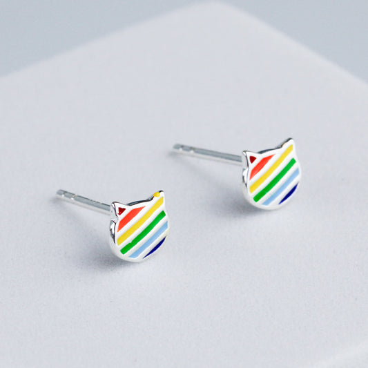 Rainbow Cat Stud Earrings