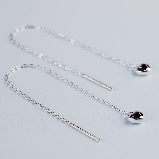 Tiny Heart Chain Threader Earrings
