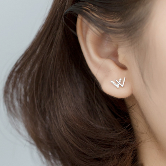 Crystal Detail 'W' Initial Stud Earrings