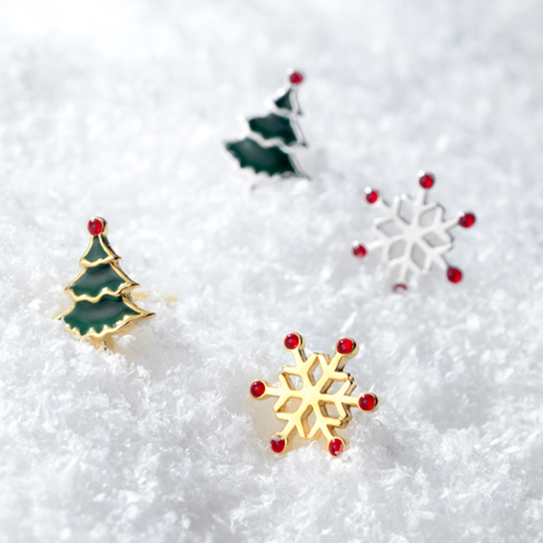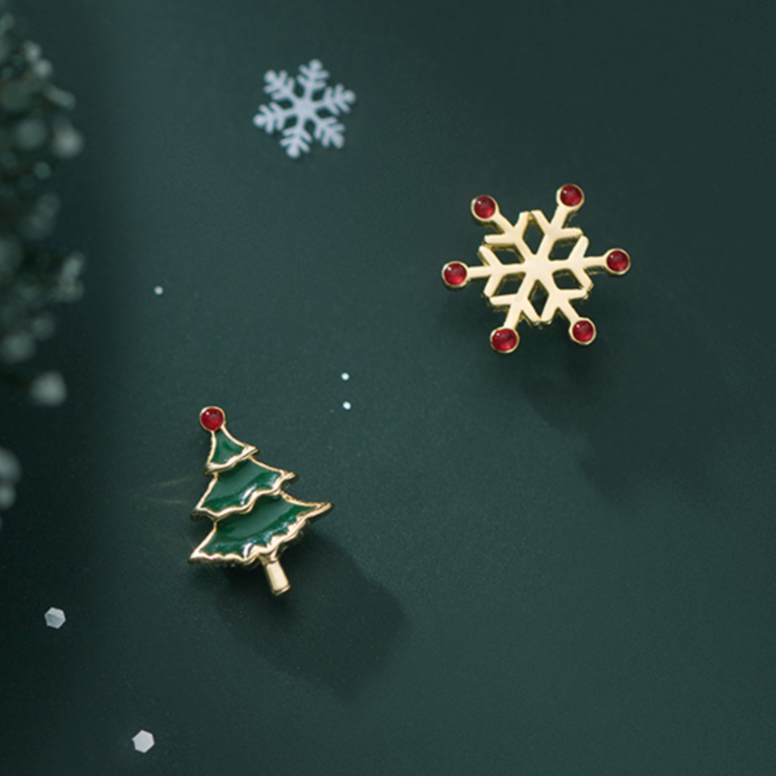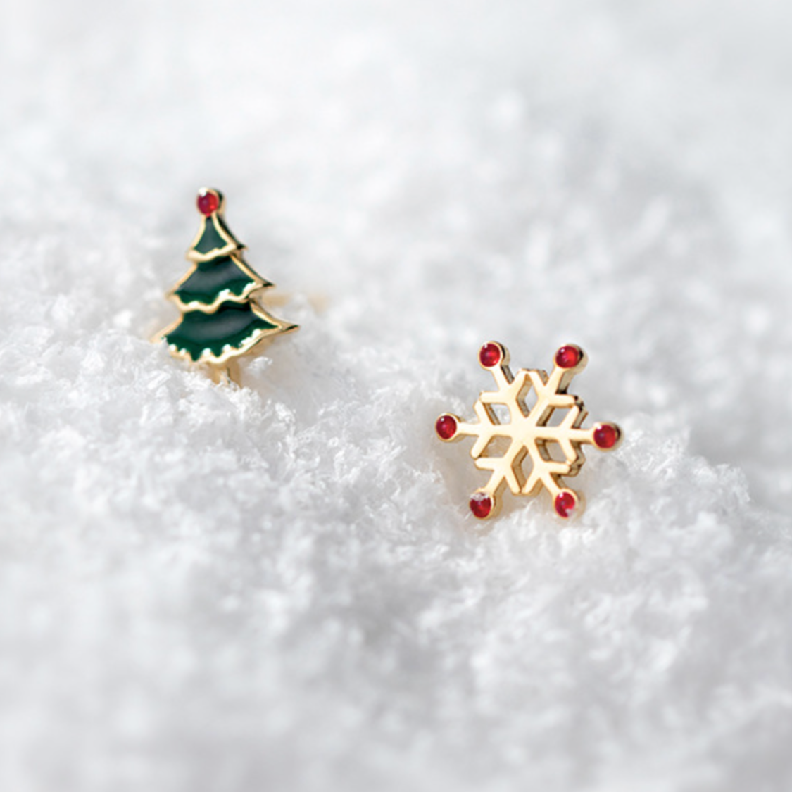 Christmas Tree and Snowflake Stud Earrings