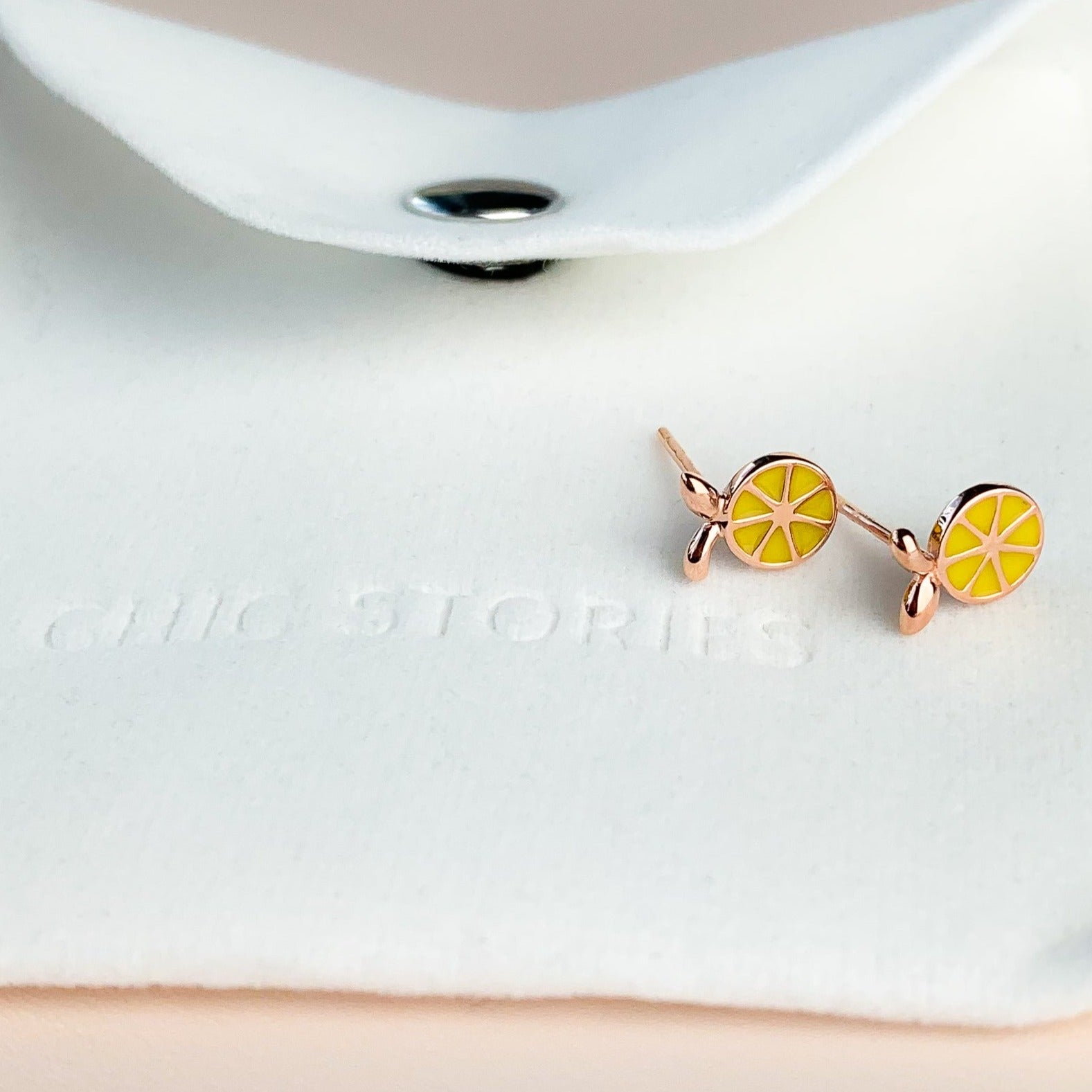 These citrus stud earrings are made of quality sterling silver. The simple, minimalist design makes them ideal for everyday wear and combining with other pieces. Chic Stories jewellery comes beautifully packaged, which makes these dainty earrings the perfect gift for your loved ones, whether it's Christmas, Mother's Day or a birthday.