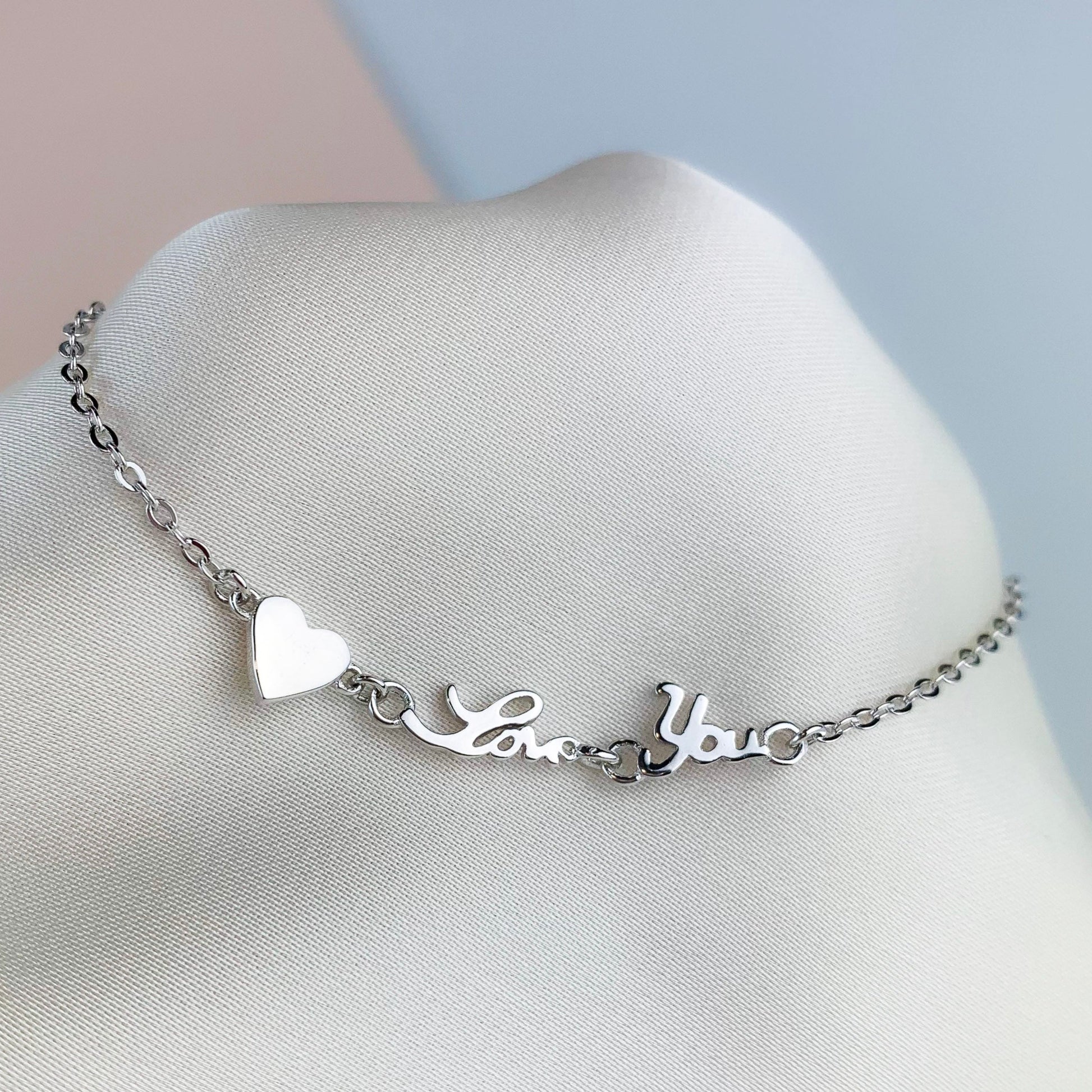 'Love You' Heart Charm Bracelet