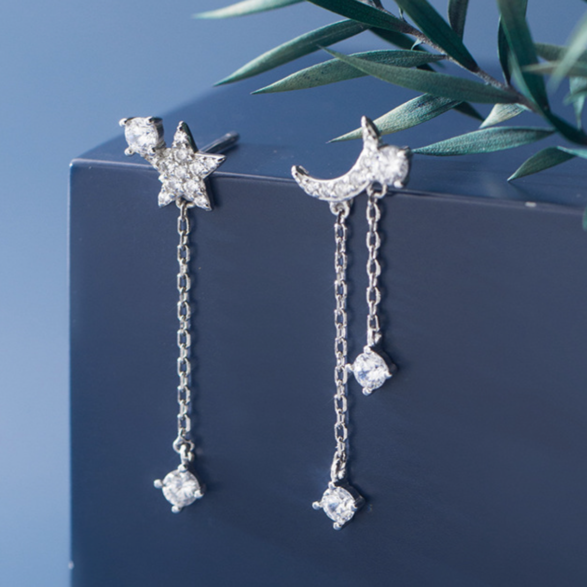 These crystal celestial chain dangle earrings are made of quality sterling silver. The simple, minimalist design makes them ideal for everyday wear and combining with other pieces. Chic Stories jewellery comes beautifully packaged, which makes these elegant earrings the perfect gift for your loved ones, whether it's Christmas, Mother's Day or a birthday.