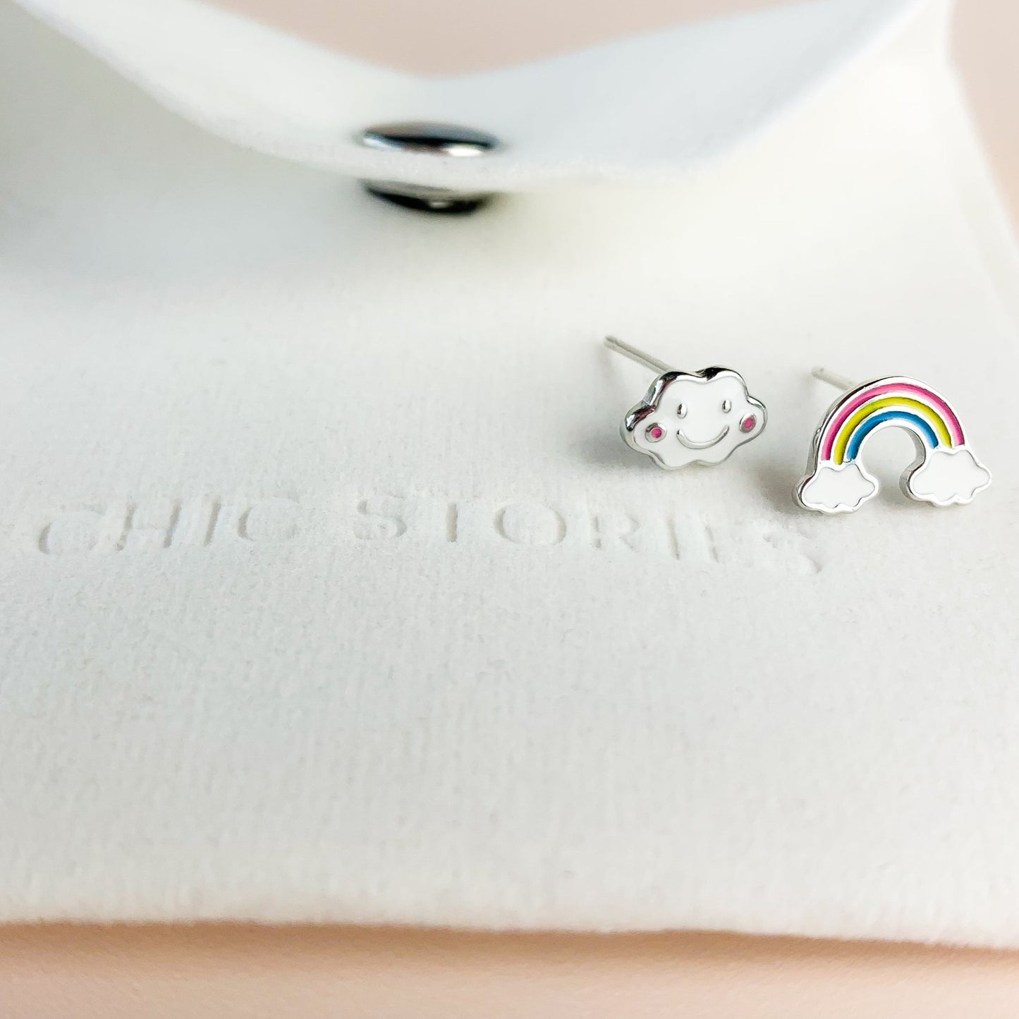 These asymmetrical rainbow and smiling cloud stud earrings are made of quality sterling silver. The simple, minimalist design makes them ideal for everyday wear and combining with other pieces. Chic Stories jewellery comes beautifully packaged, which makes these dainty earrings the perfect gift for your loved ones, whether it's Christmas, Mother's Day or a birthday.