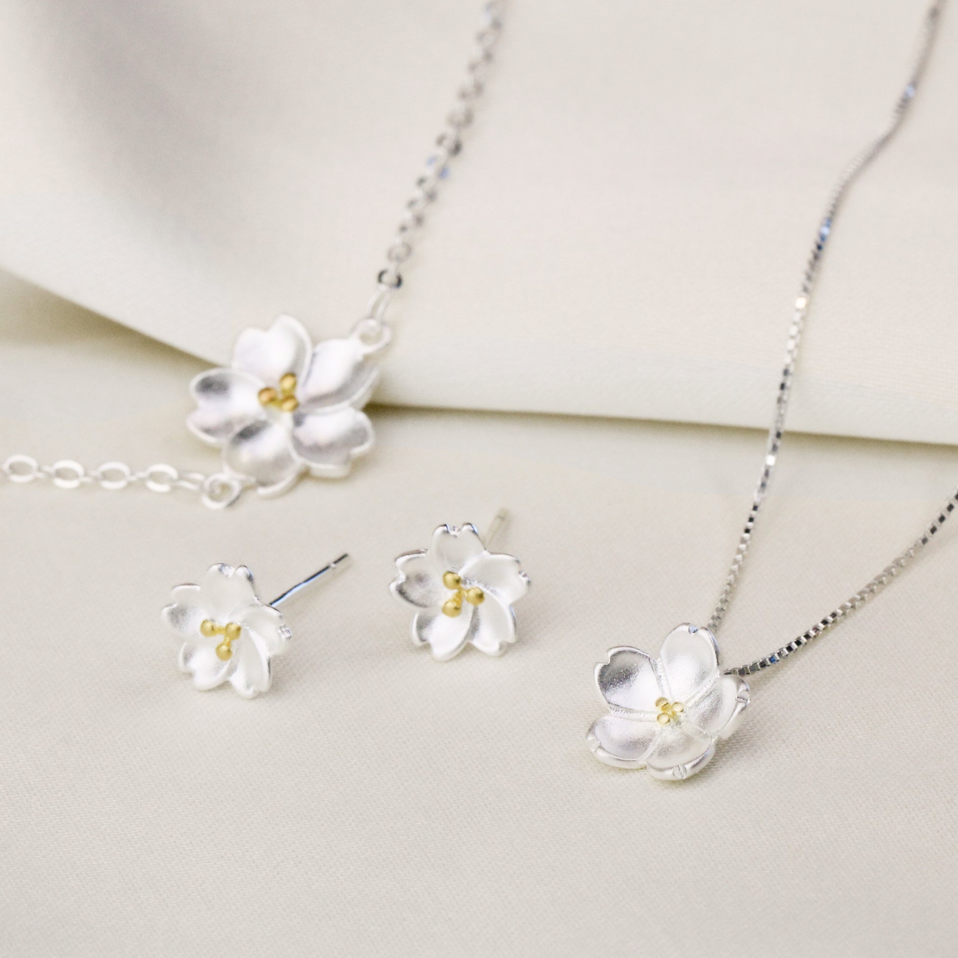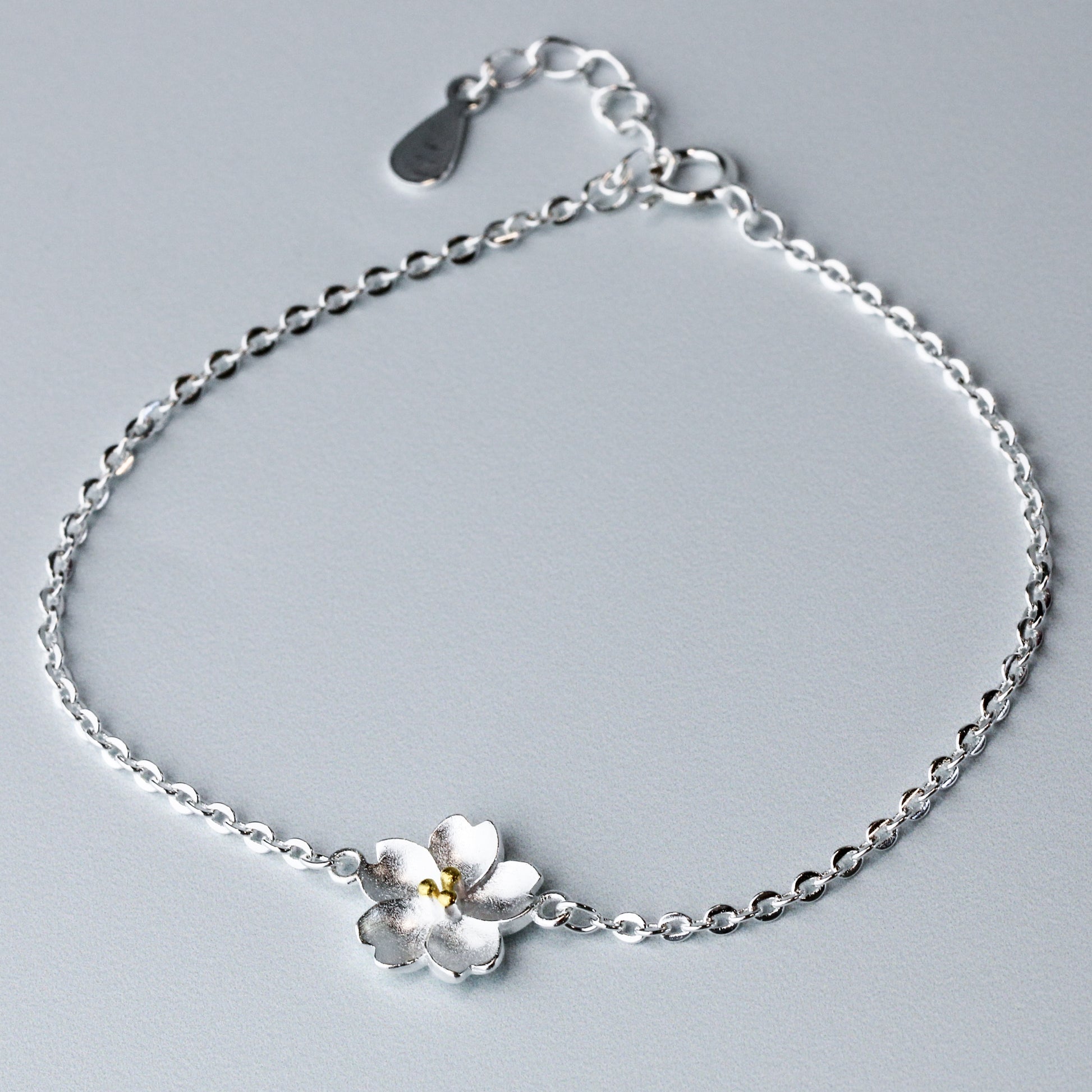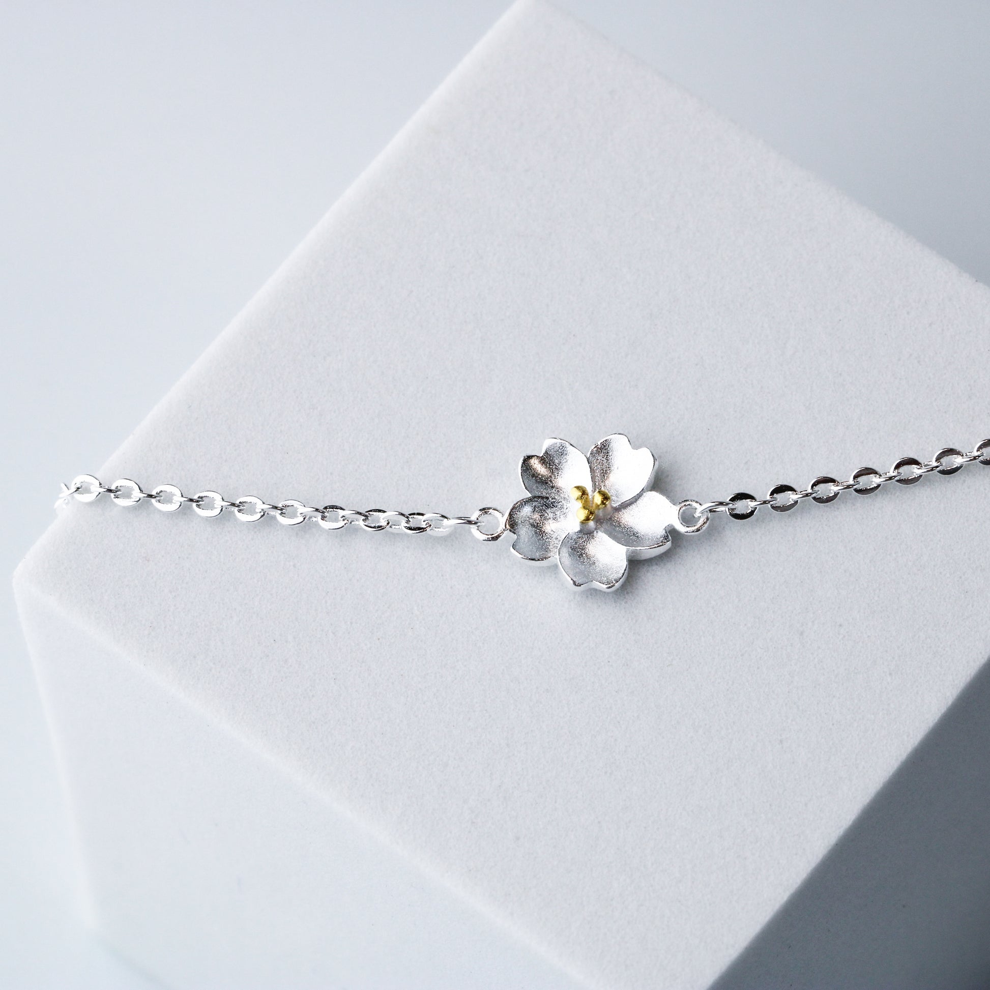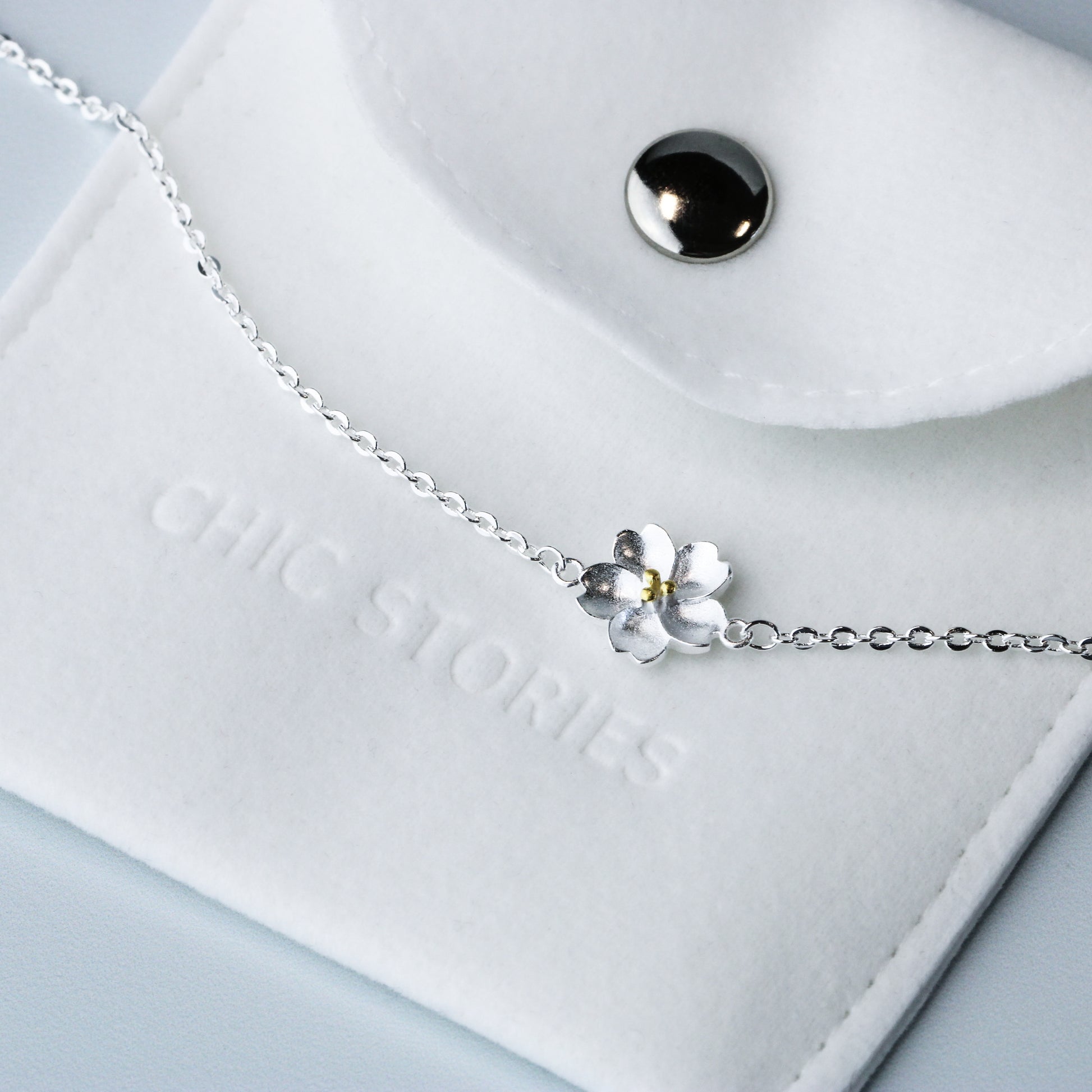 This cherry blossom flower bracelet is made of quality sterling silver with a matte frosted finish. The simple, minimalist design makes it ideal for everyday wear and combining with other pieces. Chic Stories jewellery comes beautifully packaged, which makes this elegant bracelet the perfect gift for your loved ones, whether it's Christmas, Mother's Day or a birthday.