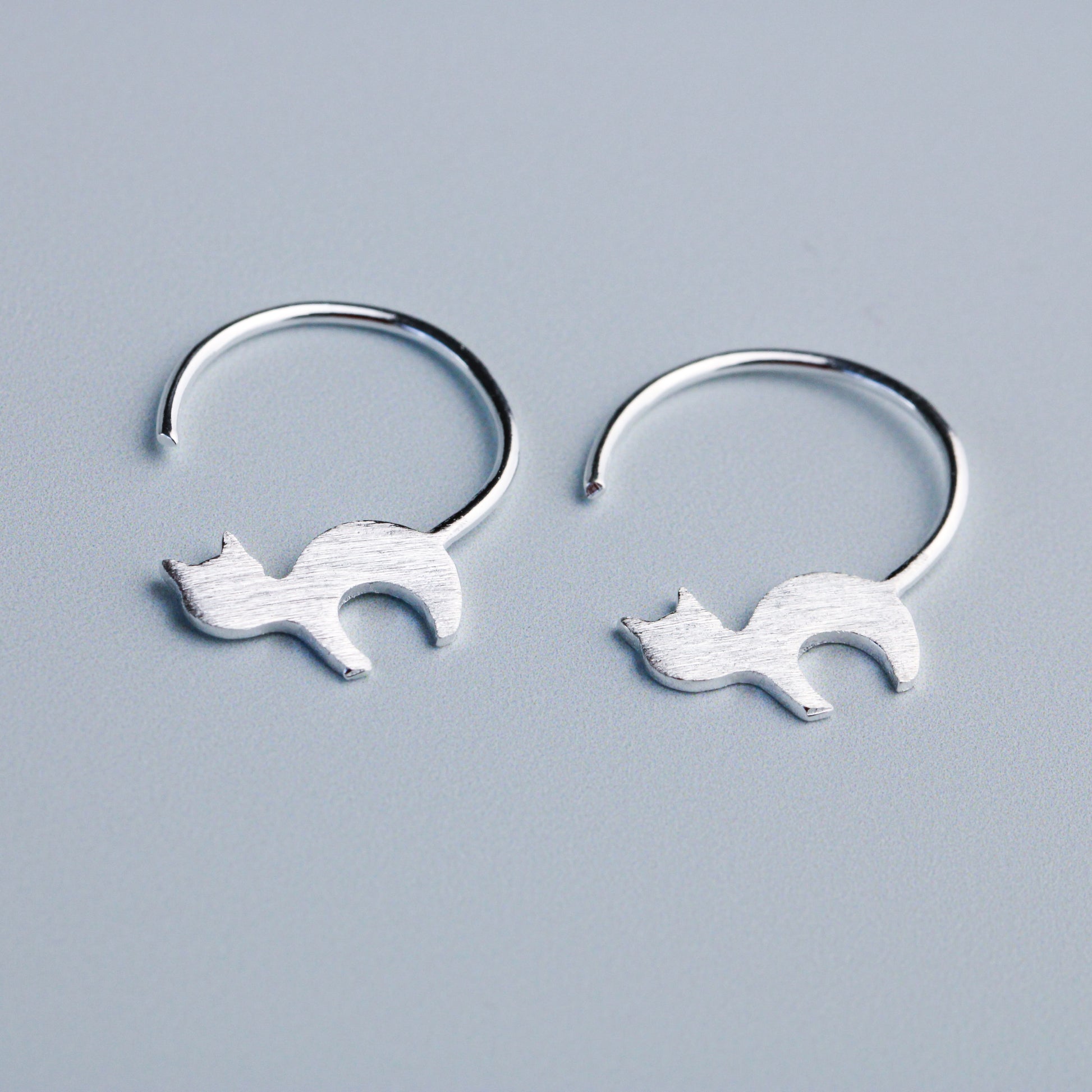 These cat silhouette hoop earrings are made of quality sterling silver with a brushed finish. The simple, minimalist design makes them ideal for everyday wear and combining with other pieces. Chic Stories jewellery comes beautifully packaged, which makes these unique earrings the perfect gift for your loved ones, whether it's Christmas, Mother's Day or a birthday.