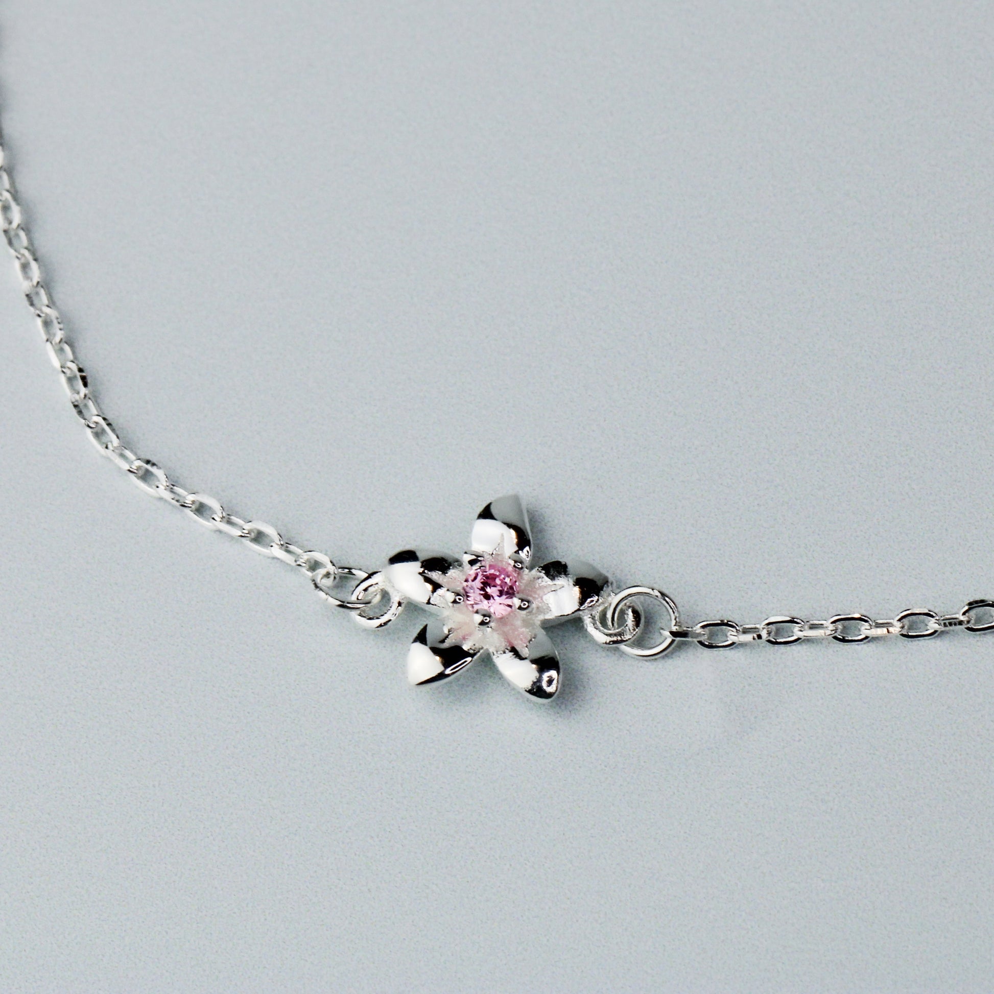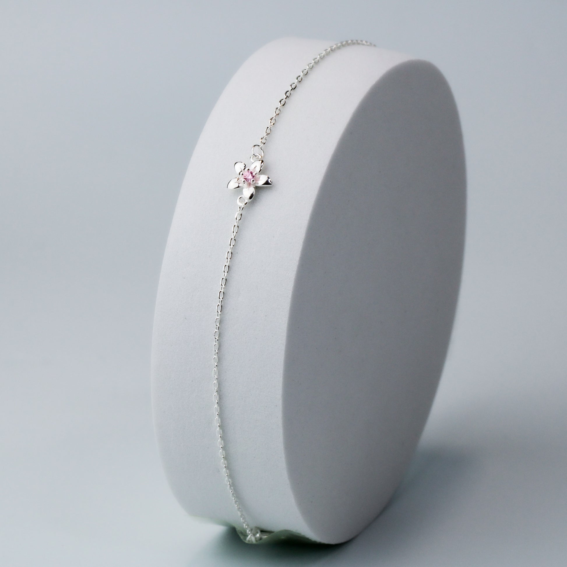 This pink crystal flower bracelet is made of quality sterling silver. The simple, minimalist design makes it ideal for everyday wear and combining with other pieces. Our jewellery comes beautifully packaged, which makes this elegant bracelet the perfect gift for your loved ones whether it's Christmas, Mother's Day, or a birthday.