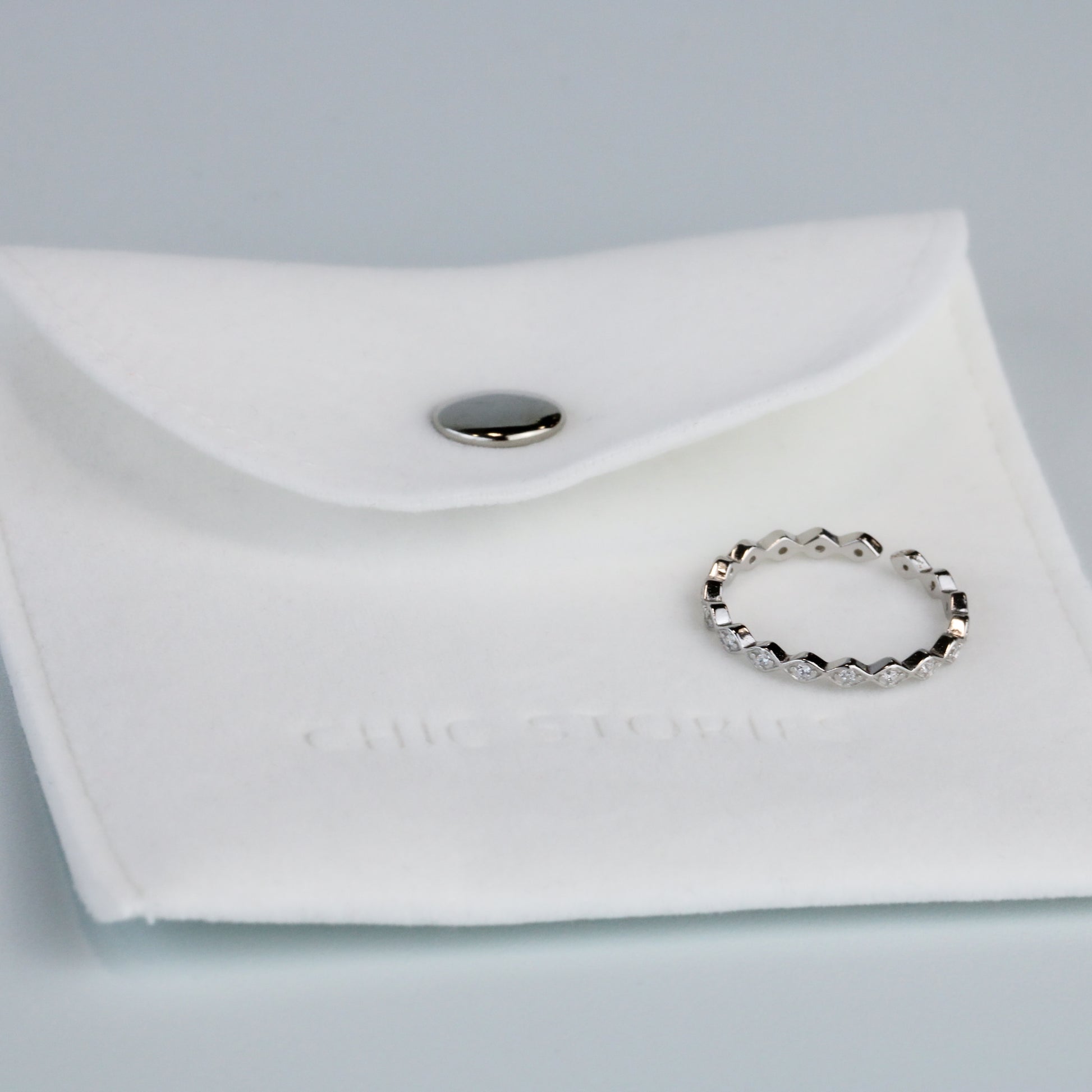This adjustable white crystal ring is made of quality sterling silver. The simple, minimalist design makes it ideal for everyday wear and combining with other pieces. Chic Stories jewellery comes beautifully packaged, which makes this elegant ring the perfect gift for your loved ones whether it's Christmas, Valentine's Day, or a birthday.