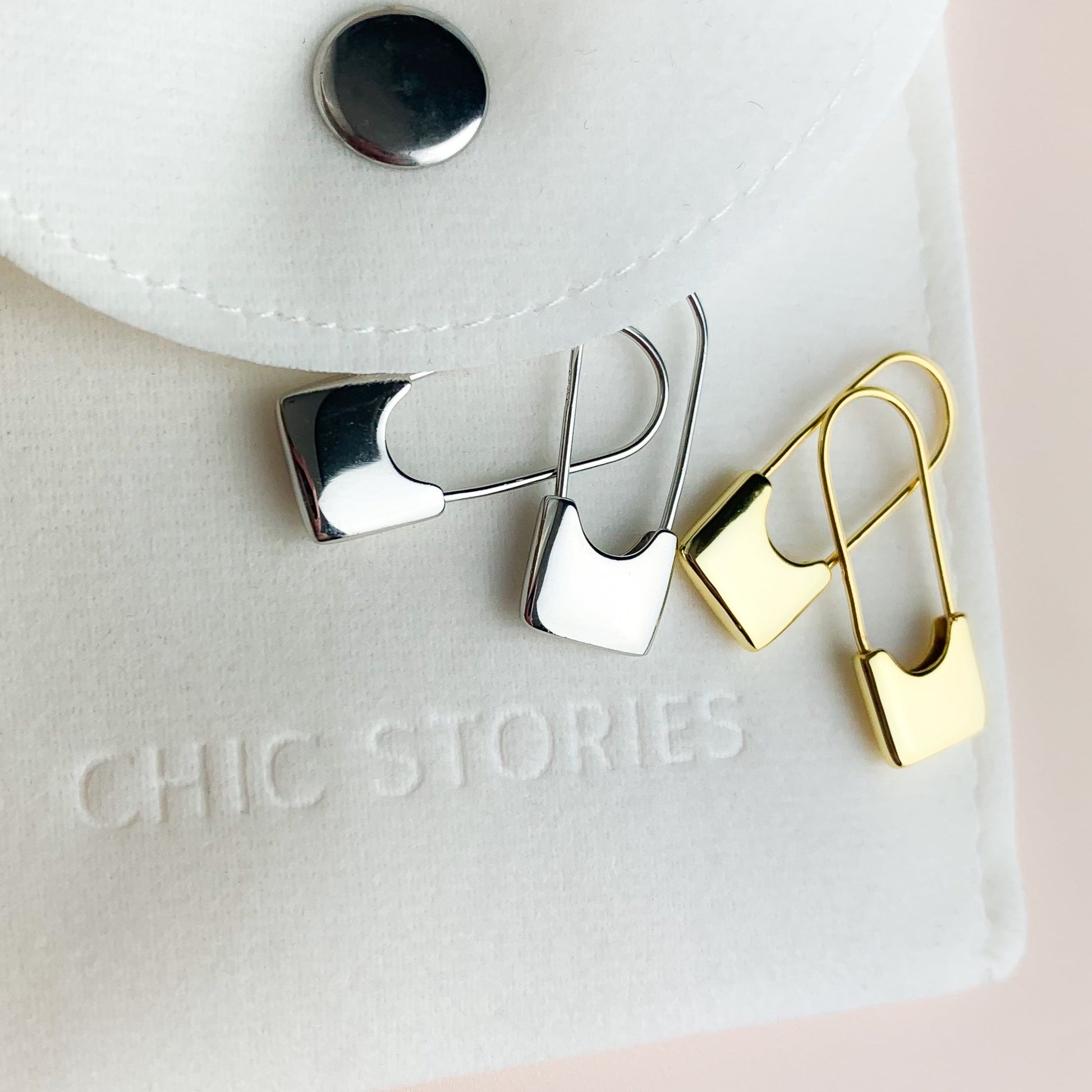 These safety pin hoop earrings are made of quality sterling silver. The simple, minimalist design makes them ideal for everyday wear and combining with other pieces. Chic Stories jewellery comes beautifully packaged, which makes these unique earrings the perfect gift for your loved ones, whether it's Christmas, Mother's Day or a birthday.